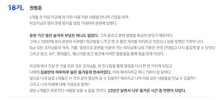 국내 집중 어학연수 18기 권병훈 6개월의 변화과정