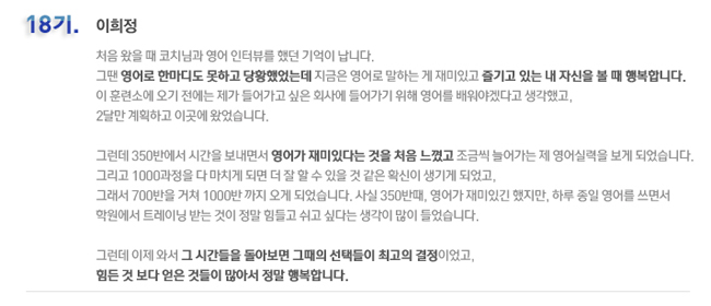 국내 집중 어학연수 18기 이희정 6개월의 변화과정