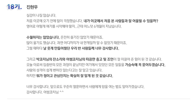 국내 집중 어학연수 18기 진현우 6개월의 변화과정