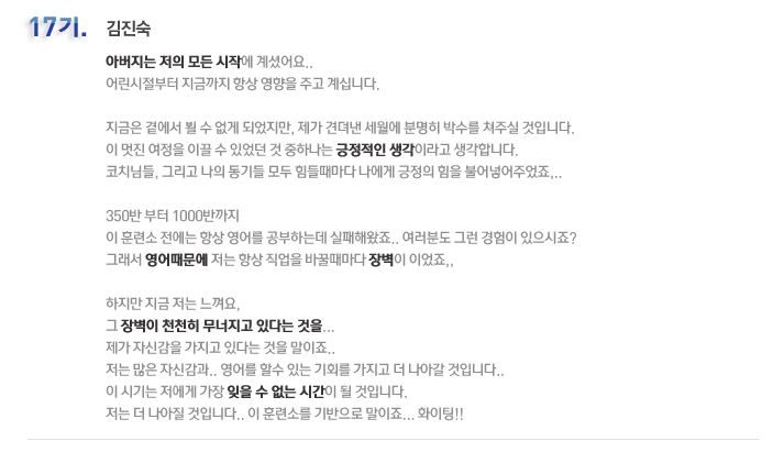 국내 집중 어학연수 17기 김진숙 6개월의 변화과정