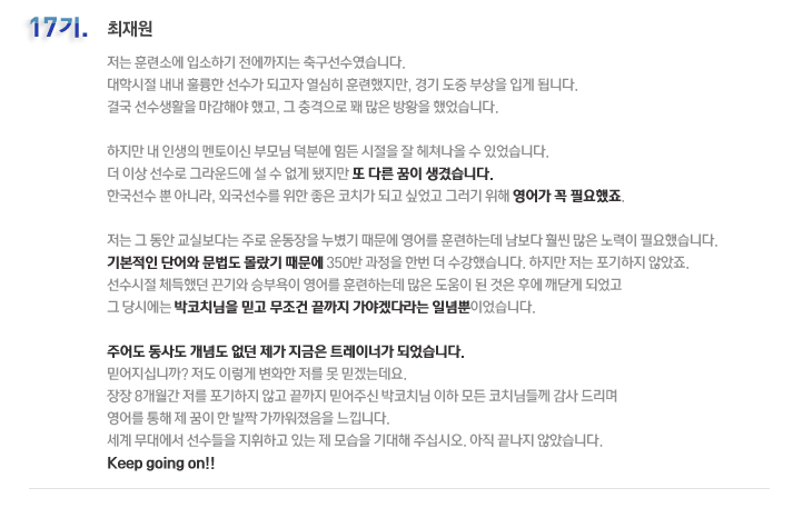국내 집중 어학연수 17기 최재원 6개월의 변화과정