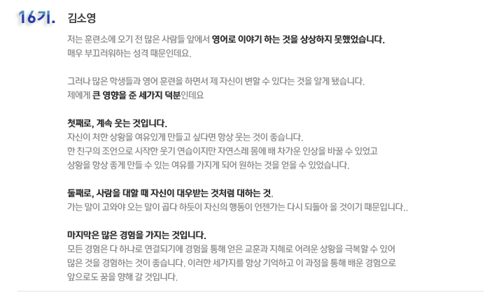 국내 집중 어학연수 16기 김홍준의 변화과정