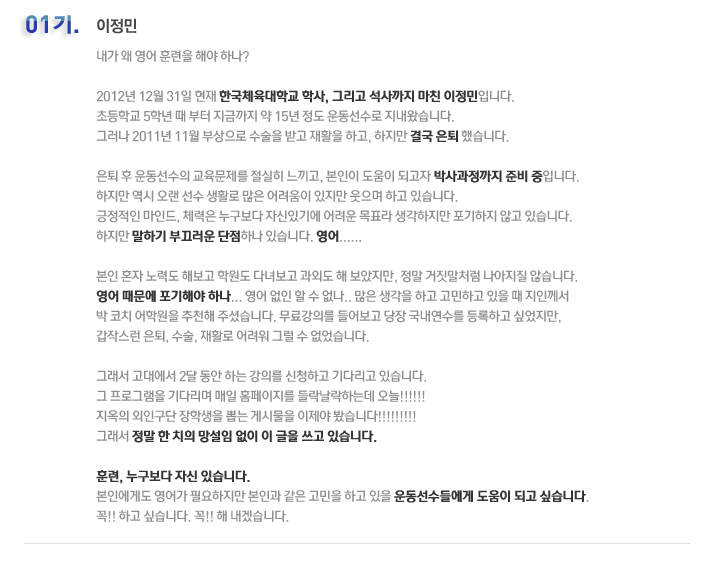 박코치 지옥의 외인구단 1기 이정민 10개월의 변화과정