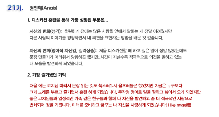 국내 집중 어학연수 21기 권인혜 6개월의 변화과정