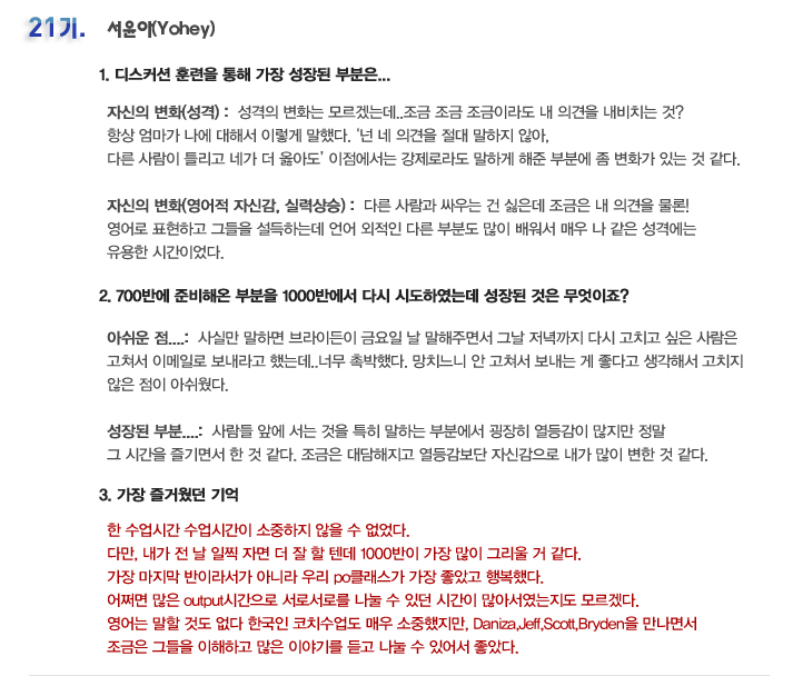 국내 집중 어학연수 21기 배창우 6개월의 변화과정