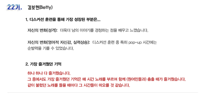 단기 집중 국내 어학연수 22기 동슬기 6개월의 변화과정