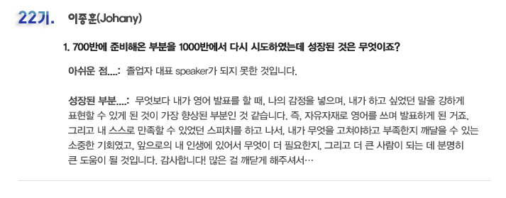 국내 집중 어학연수 22기 이종훈 6개월의 변화과정