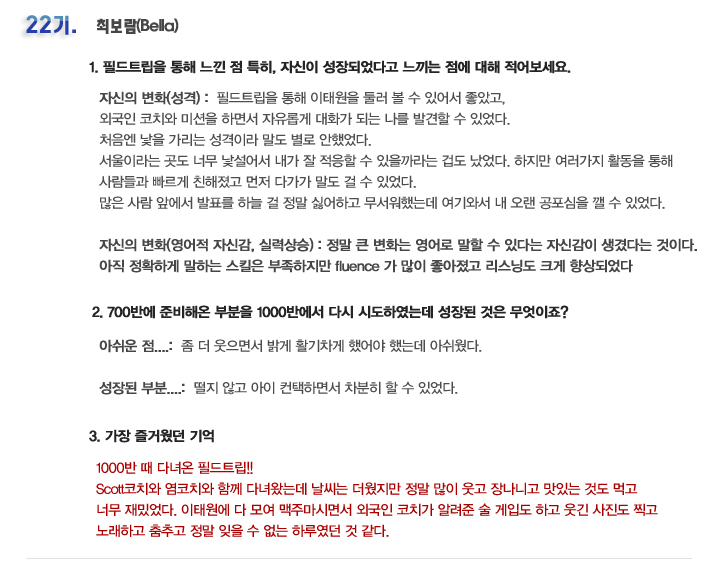 단기 집중 국내 어학연수 22기 박다해 6개월의 변화과정
